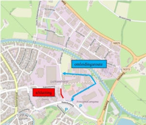Het verzoek is om medewerkers en zakelijk verkeer die niet over deze weg hoeven te rijden, vooraf al gebruik te laten maken van de routes of of de N825 of de N315.